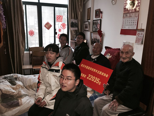 爱心在南外校园涌动,从倡议宣传到组织义卖,从发货收款到善款捐赠,在大家的支持下,活动取得圆满成功,最终共募得善款22035元。青协负责人和部分同学代表还一起走进南京向阳敬老院,举行了捐赠仪式,并看望了住在这里的几位抗战老兵。今天的他们看上去是那样平凡与普通,但回忆起昔日的战友,讲述起浴血奋战的故事,他们不由还是会很激动。当日寇的铁骑践踏着我们的土地,屠戮我们人民的时候,他们义不容辞地离开家乡告别亲人投身于拯救国家民族于水火的战斗中去,经过八年的浴血奋战,最终取得了抗日战争的伟大胜利。他们是我们民族的骄傲,他们的存在是我们民族历经苦难而没有沉沦、饱经沧桑而依然坚韧不拔生生不息的原因之所在。这些曾经用生命保家卫国的英雄们值得我们致敬!在他们的身上我们看到了中华民族团结一心,抵御外族侵略的铮铮铁骨与不屈精神!