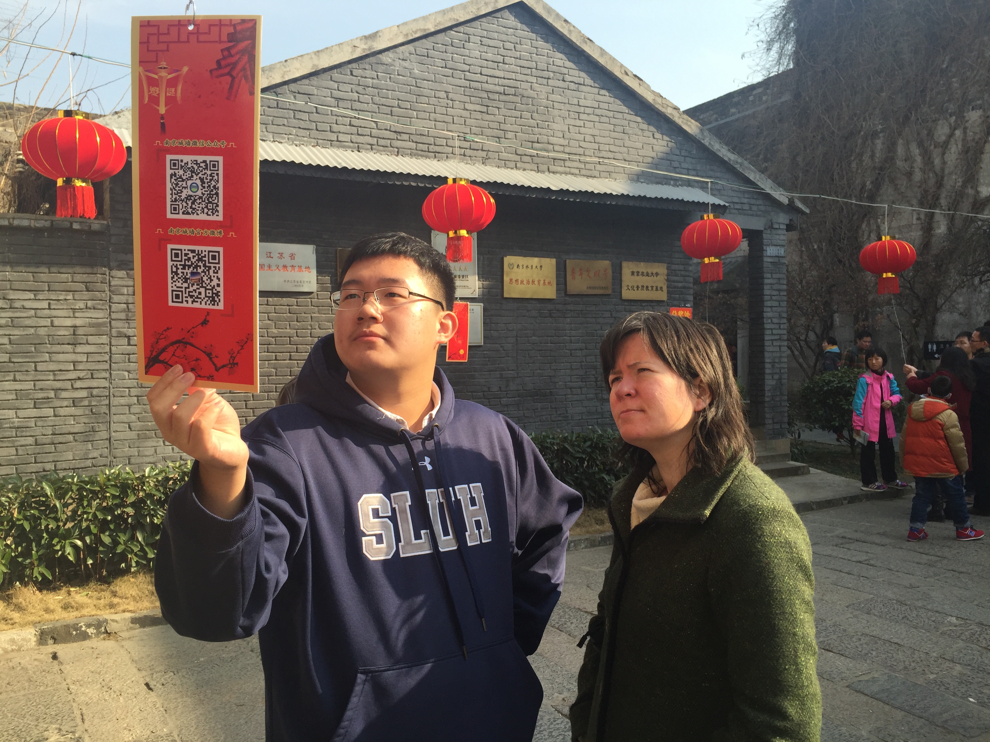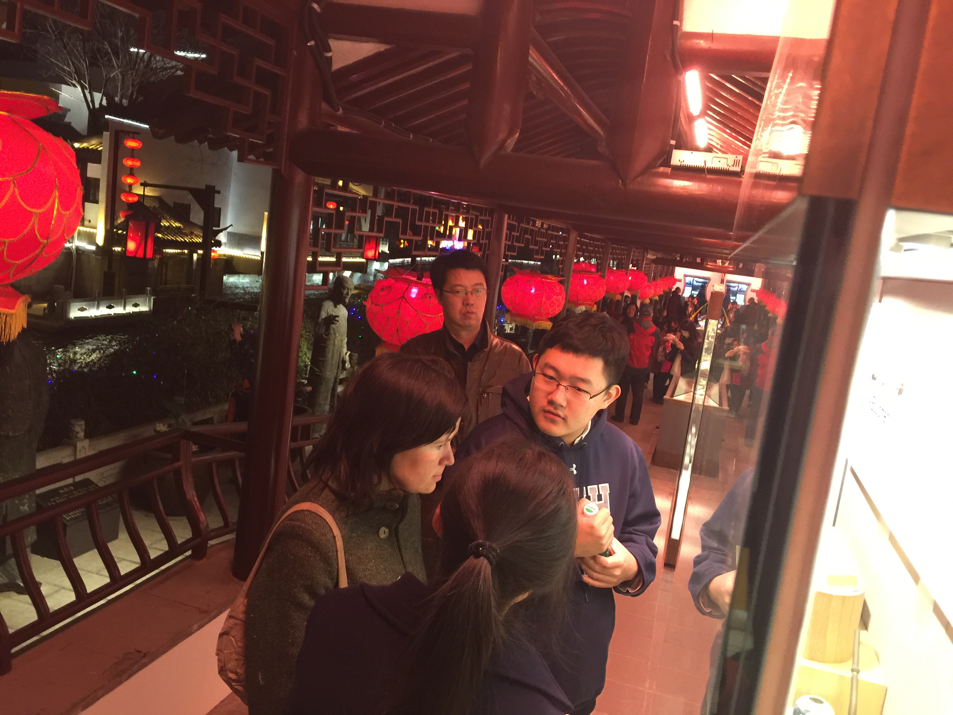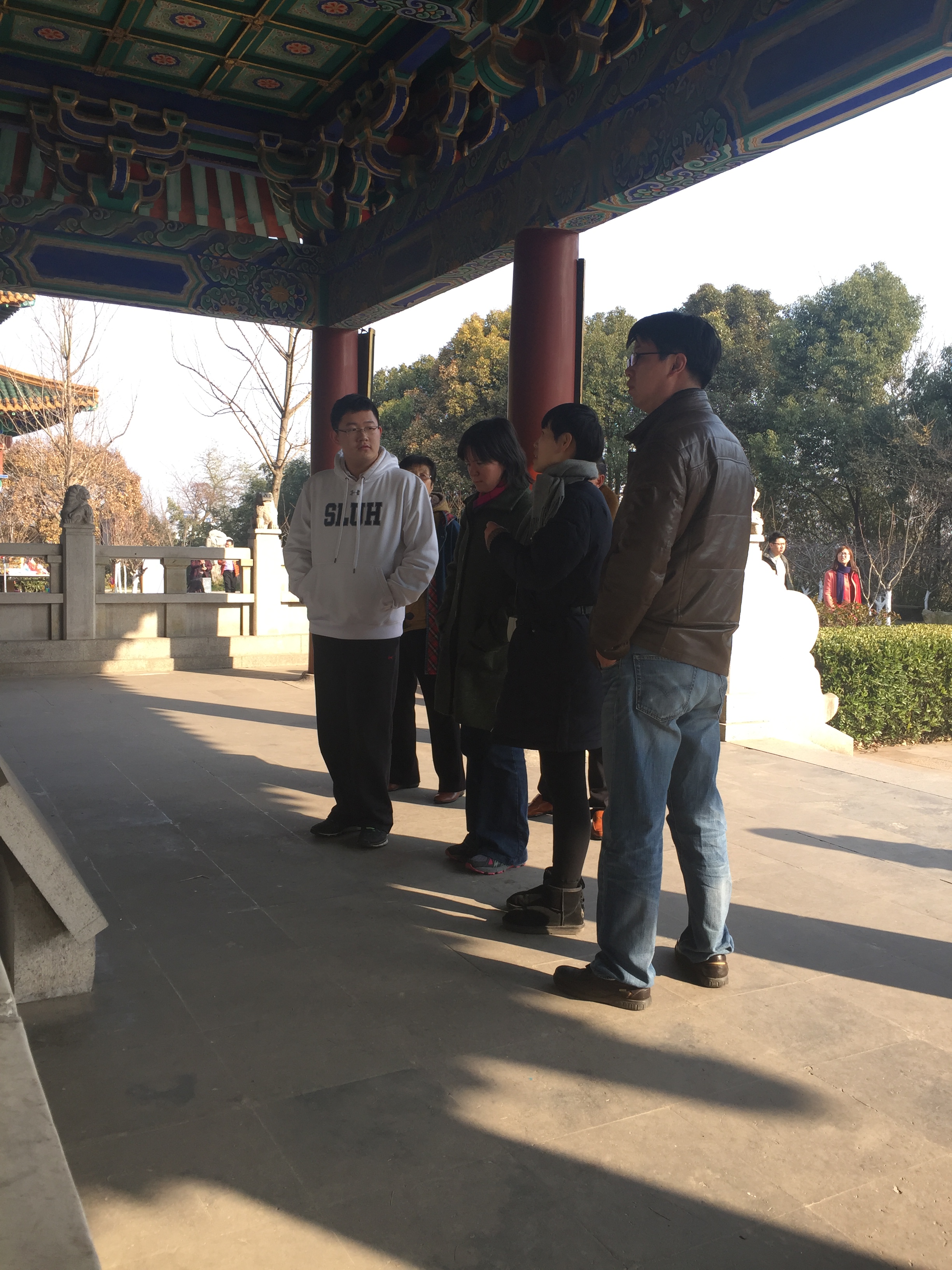 说起这些景点,我最先想到的是我为Therese做的翻译工作,而这也是我人生中第一次体会到做翻译的辛苦。我曾经去美国交流过一个学期,平常口语也不错,所以说和Therese做一般的交流没有什么问题,于是当我们首先去阅江楼的时候,我原本没有以为翻译是一件多么困难的事情。然而真正开始翻译时,我意识到我犯了一个大错。中国传统文化中的很多东西在英语中并没有对应的词能用来直接表达,有的时候一个简单的概念需要用很长的一段话才能解释清楚,而一旦涉及到典故或者幽默,翻译的难度则又会高一个八度。很多时候,我觉得我自己翻译的很清楚了,但是Therese看上去还是没有理解,文化差异在这之中也成为了一个拦路虎。举个例子吧,我们在秦淮画舫上游览夫子庙夜景的时候,中文导游讲解,不时冒出一句古诗“三山半落青天外,二水中分白鹭洲”,逼得我直接投降。在江南贡院听导游介绍科举考试的时候,乡试、殿试的概念我也跟Therese解释了半天。另外,作为翻译,全程思想都需要高度集中,不能错过中文导游讲解的细节,而且我做的翻译是导游说一段,我翻一段,更不用想象同声传译员了。这样的困难也让我意识到,要想让中国文化真正走向世界,我们不仅需要了解中国文化的人,也需要能将中国文化传递给外国朋友的人。
