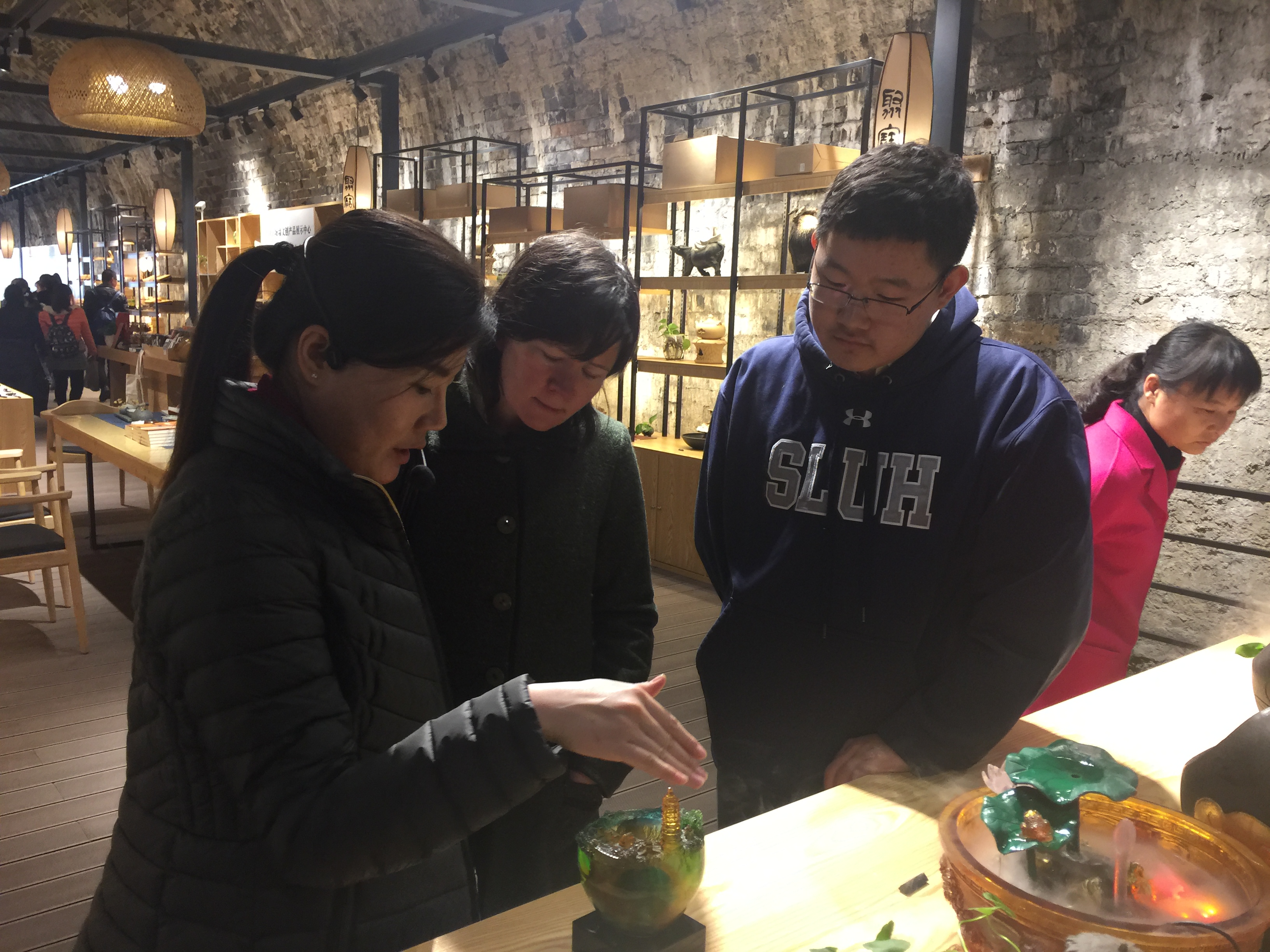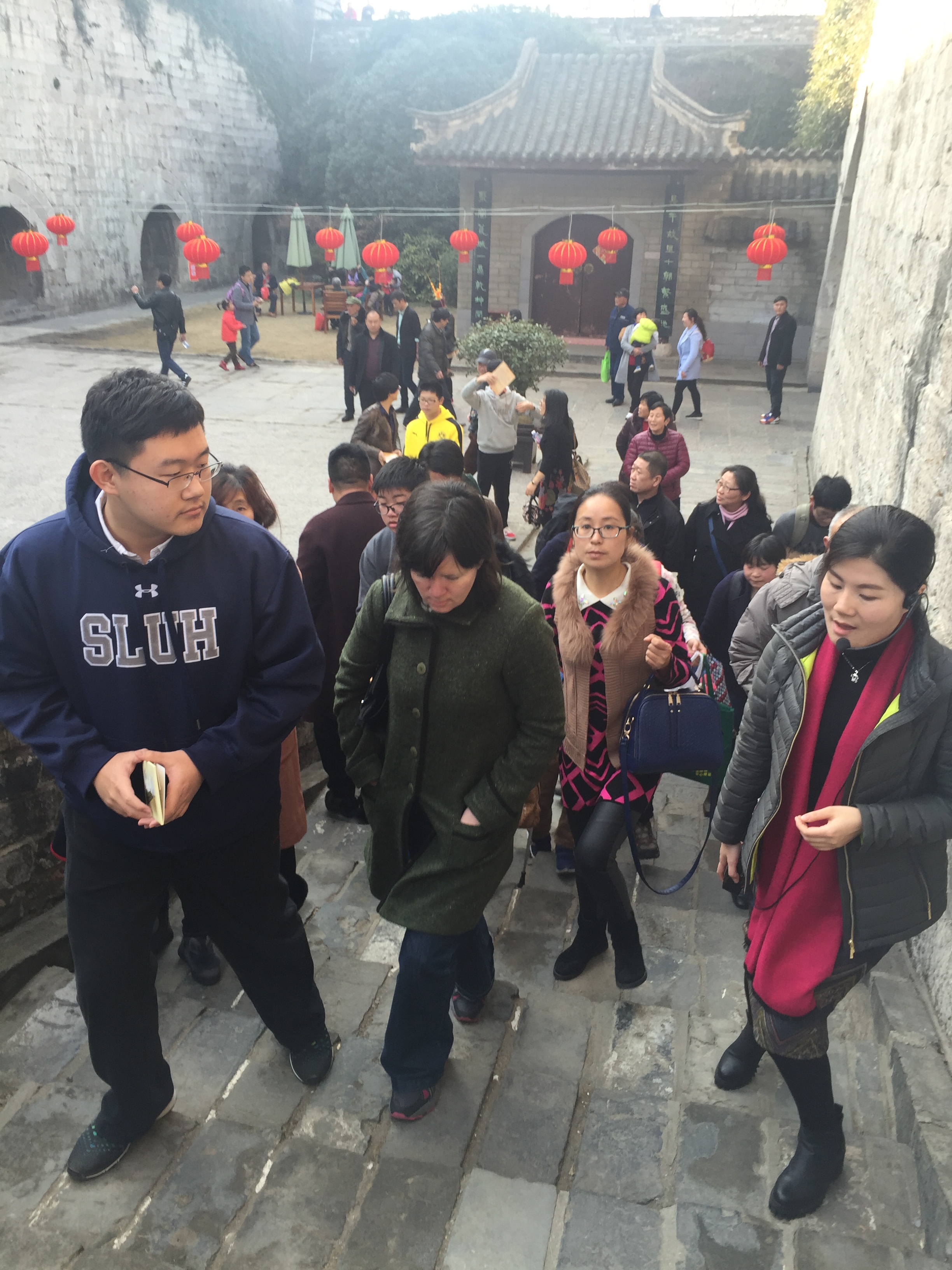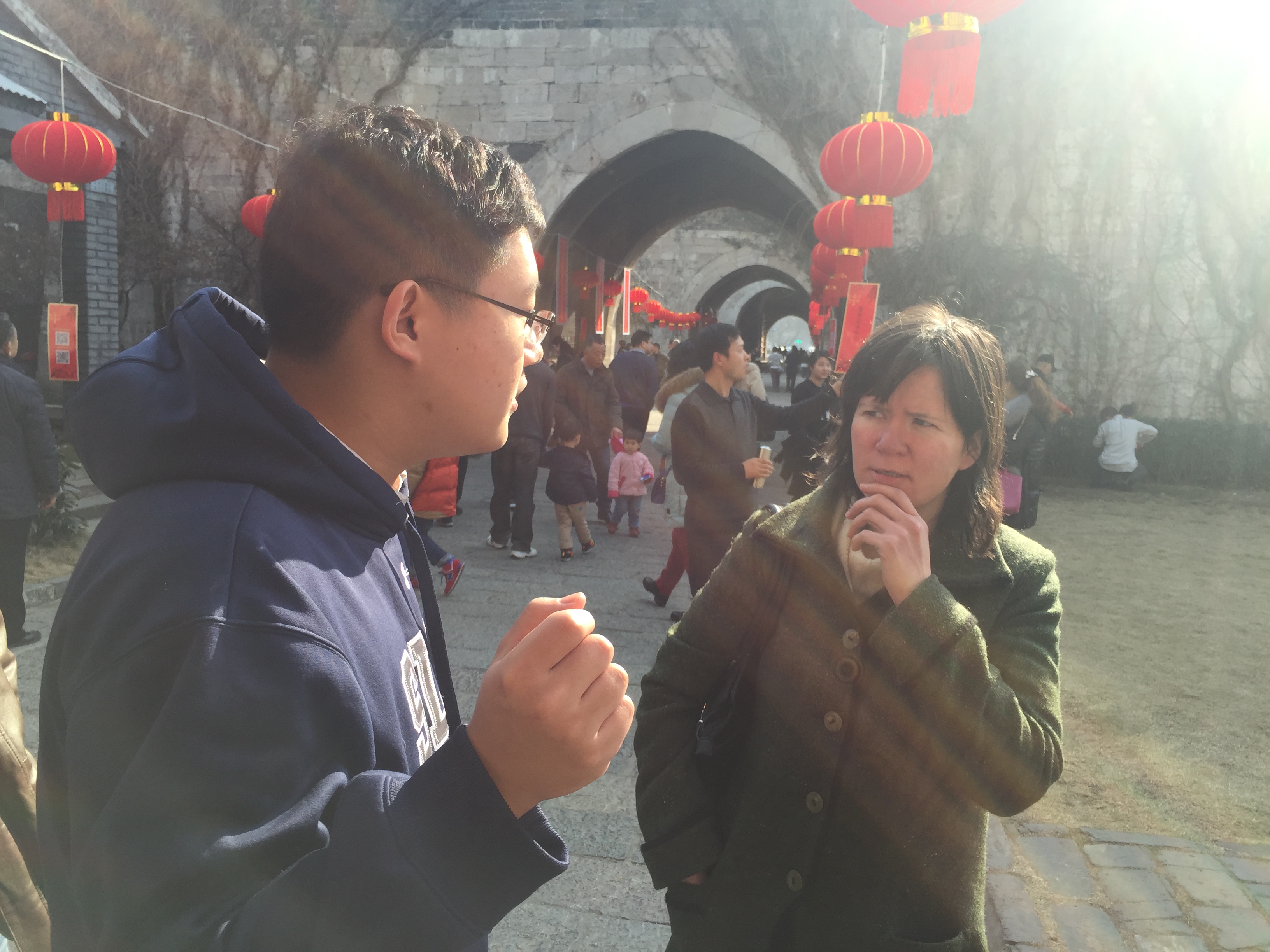 说起这些景点,我最先想到的是我为Therese做的翻译工作,而这也是我人生中第一次体会到做翻译的辛苦。我曾经去美国交流过一个学期,平常口语也不错,所以说和Therese做一般的交流没有什么问题,于是当我们首先去阅江楼的时候,我原本没有以为翻译是一件多么困难的事情。然而真正开始翻译时,我意识到我犯了一个大错。中国传统文化中的很多东西在英语中并没有对应的词能用来直接表达,有的时候一个简单的概念需要用很长的一段话才能解释清楚,而一旦涉及到典故或者幽默,翻译的难度则又会高一个八度。很多时候,我觉得我自己翻译的很清楚了,但是Therese看上去还是没有理解,文化差异在这之中也成为了一个拦路虎。举个例子吧,我们在秦淮画舫上游览夫子庙夜景的时候,中文导游讲解,不时冒出一句古诗“三山半落青天外,二水中分白鹭洲”,逼得我直接投降。在江南贡院听导游介绍科举考试的时候,乡试、殿试的概念我也跟Therese解释了半天。另外,作为翻译,全程思想都需要高度集中,不能错过中文导游讲解的细节,而且我做的翻译是导游说一段,我翻一段,更不用想象同声传译员了。这样的困难也让我意识到,要想让中国文化真正走向世界,我们不仅需要了解中国文化的人,也需要能将中国文化传递给外国朋友的人。