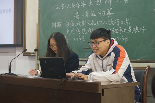 3月14日下午四点,一年一度的五四辩论赛在E二楼和三楼阶梯教室拉开帷幕。高一年级八个班组建了8支队伍展开了较量。在高一4班和7班的对阵中,以“传统戏剧中加入流行元素是对传统戏剧的传承/破坏”为题,八个辩手通过陈词、攻辩、自由辩论和总结发言四个环节,针锋相对地发表了自己的观点。正方4班辩论队认为、如今传统戏剧在年轻人群中十分冷门,若不适当的加入一些“流行元素”,吸引更多年轻人的关注、进而愿意欣赏、传承,只有这样传统戏剧才有健康的未来。反方7班辩论队认为,加入流行元素破坏了戏剧本身的完整性,导致戏剧变得不伦不类、失去传统本身的艺术价值与精神价值,这种方法是不可取的。虽然参加辩论的都是高一年级新选手,但辩论过程却十分激烈,两方实力不相上下。经过由三位老师加两位高三学长组成的评委组的讨论评判,高一7班以3:2微弱优势获得本场辩论的优胜,7班的卞格同学的4班的李孟若同学获得优秀辩手称号。