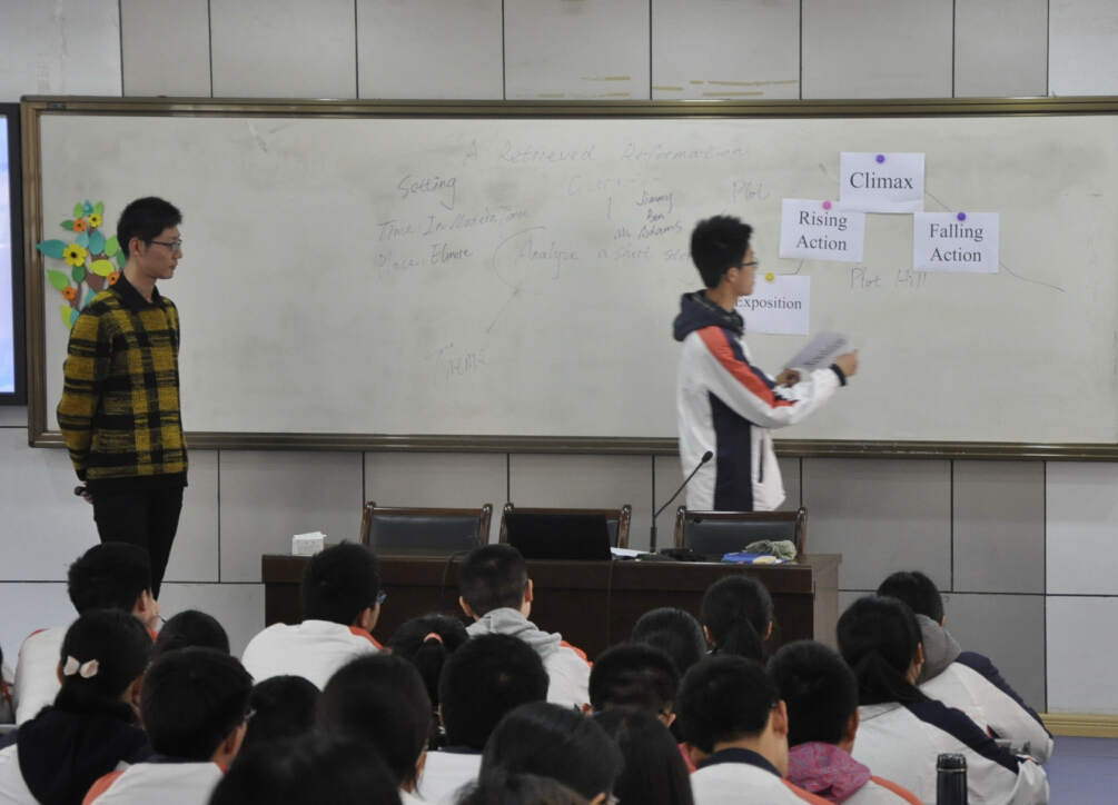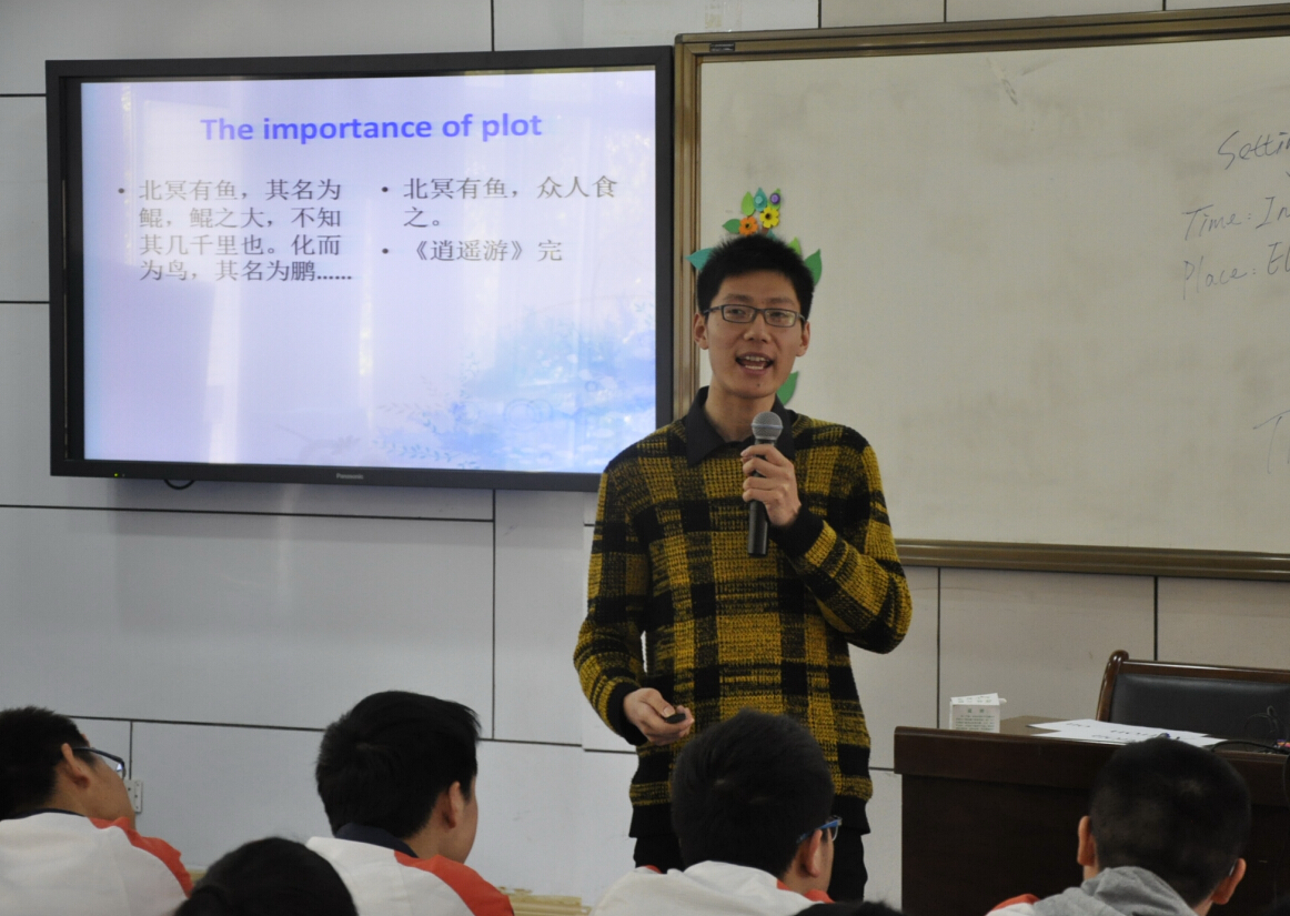 我校高中英语组侯思成老师成功地上了一节文学阅读课。这堂示范课充分体现了他本人的文学修养与语言素质,展示了他对此类课型的思考与探索。南京市教研室邢文骏教研员给了他这节课八字评价:自然、融通、开放、批判。