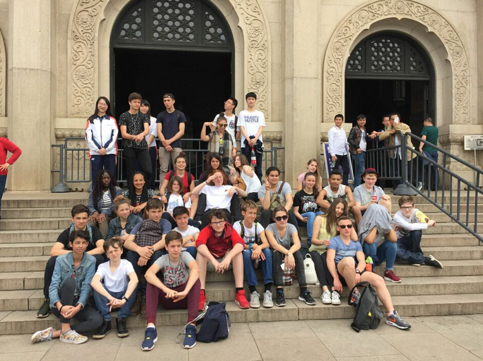 2016年4月10日-18日,法国枫丹白露佛朗索瓦•谷拜汉中学师生一行32人来我校交流。这所学校和南外建立友好关系近30年。南外每年选送2名学生去交流学习一年,佛朗索瓦•谷拜汉中学每两年组织一批师生来访,法国学生白天学习中文、书法、绘画、武术,并进行文化参观,晚上及周末由法语班学生接待,零距离接触中国文化。中国学生利用机会和同龄法国学生操练法语,初步了解法国文化。