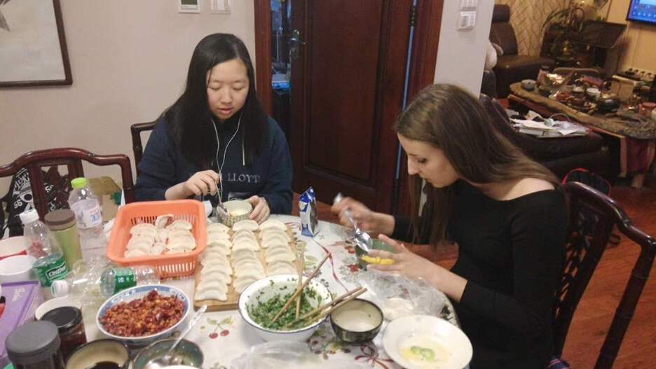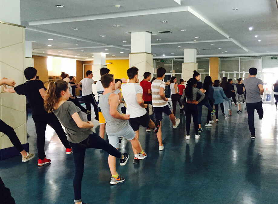 2名在佛朗索瓦•谷拜汉中学交流一年的女生参加宿舍节活动