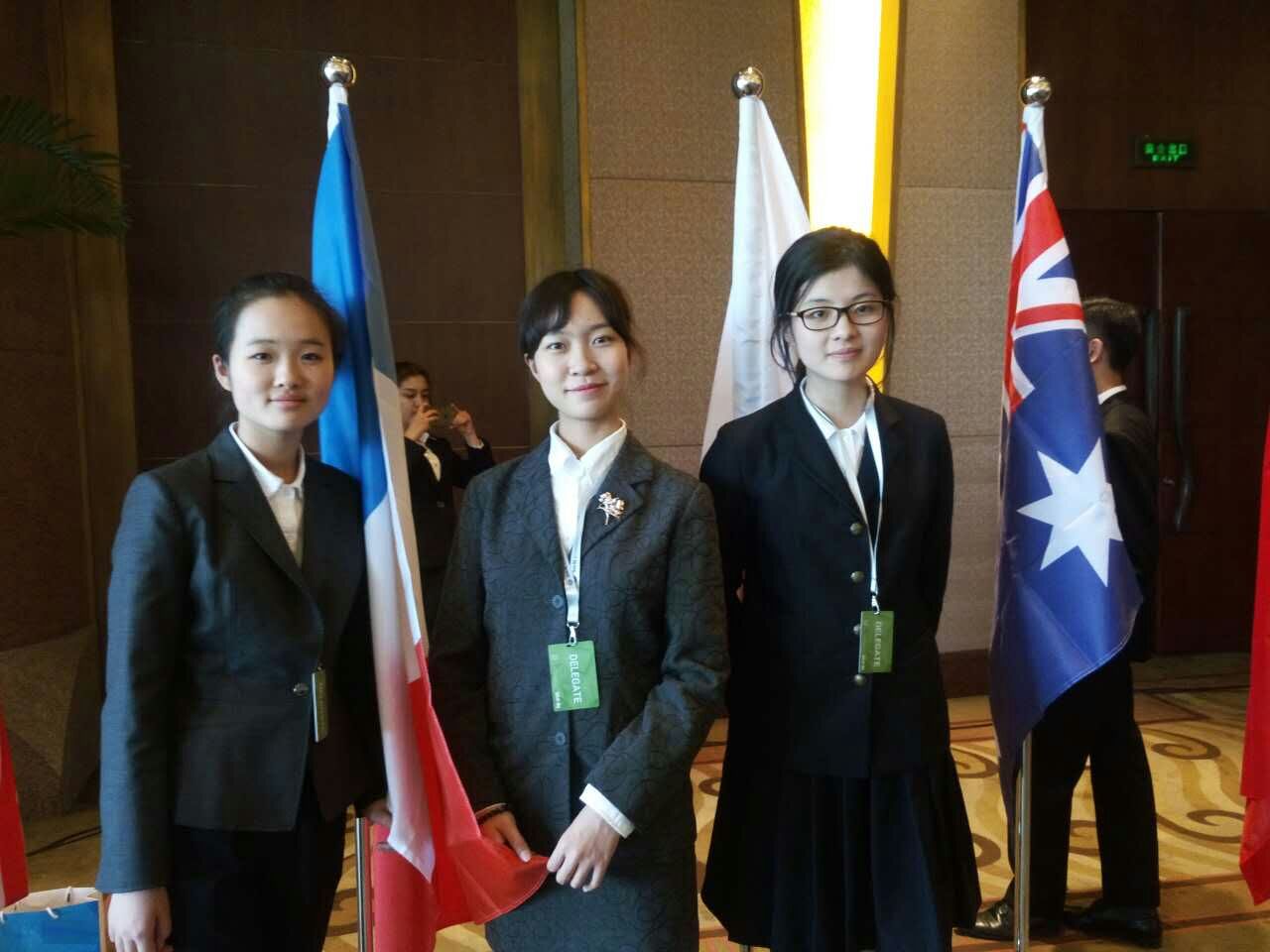 2016年5月6日-8日,高一年级法语班卜易、李泠兮和林霏雨参加了在北京外交学院举办的2016年北京模拟联合国大会。