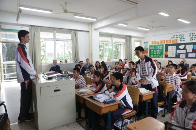 包玉刚实验学校此行的主要目的是希望能较细致地了解南外的外语特色教学和国际课程。我校邹正校长首先从学校的创建历史、办学理念、培养目标、学生发展等方面向各位做了简要介绍。随后,在我校的STEM实验室,来自高一2班的程浩然同学,用英文向来访者做了细致的介绍。其学科素养和语言素质得到大家的一致好评。之后,来访者又在初二8班听了辛强老师的一节英语课。课上,同学们思维活跃,大方、自信地就所上的内容进行了富有辩证性的讨论,师生间互动充分,气氛融洽。最后,20多位嘉宾又走进了我校“哈佛辩论”的教室,与高中同学一起饶有兴致地上了30分钟的辩论选修课。