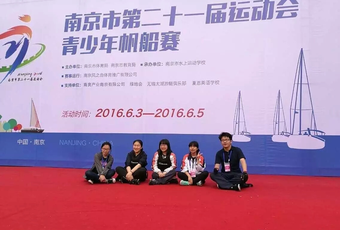 "莫名其妙"地成了南外帆船队一员。得知参赛消息时内心是吃惊的,更是期待的。对于我这个才上了一学期帆船选修课,每周只上一次选修课的学生来说,每堂课似乎都很享受"兜风""看风景"的时间,而戴上"运动员"参赛证,似乎有些"不可能"——飘着小雨,玄武湖湖畔集合了南外和树人两支队伍。有人说,这两所学校一直都是"competitors",而今天,的确如此。第一次参赛的南外初中组——也就是我们,确实遇到了一些小麻烦。比如没有完整的训练,升帆时候卡住了,两位船员没有来。但所谓的"团队精神"让我们四个船员有了信心。船长一路上指挥着我们,似乎一路上,南外都属于领先地位。作为前帆辽手,需要在转向的时候用力拉或放绳子,甚至手上都磨破了,可为了这份"glory"–属于NFLS的glroy却也要拼了命。胜利的喇叭吹响,内心真的是激动万分。