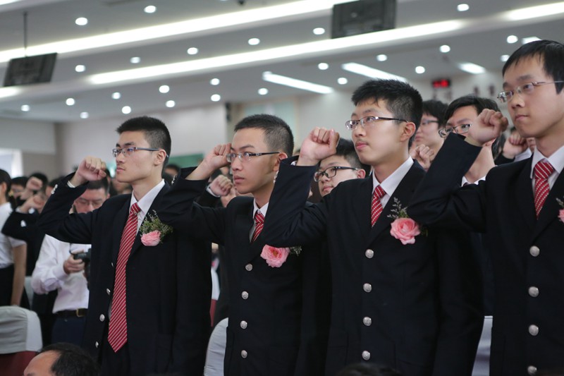 我校2001届优秀毕业生陈郢同学从南外毕业后,获得了复旦大学的学士学位,工作若干年后,他又前往哈佛大学深造,获得了MBA工商管理硕士学位和贝克学者的称号。今天他不仅带来了对十八岁成人的思考,还带领高三全体同学,面对国旗,庄严宣誓。
