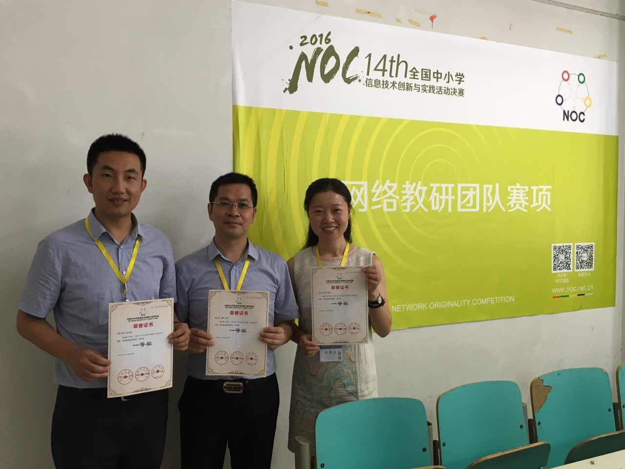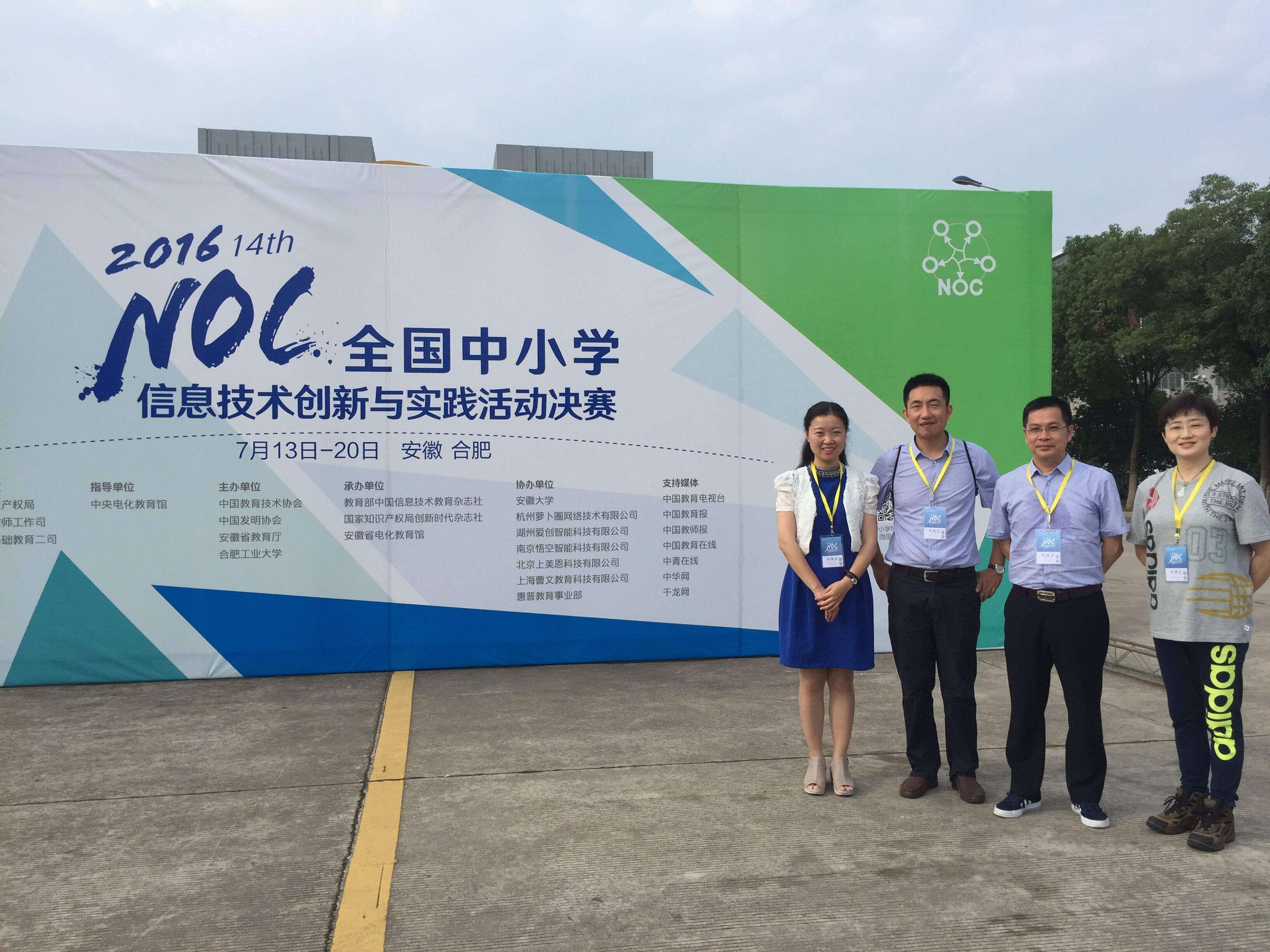 第十四届“全国中小学信息技术创新与实践活动”(简称NOC活动)决赛于2016年7月13日至20日在安徽省合肥市举行。我校由殷玉琪、段伟、刘辉三位老师组成的教研团队,参加了“网络教研团队”竞赛项目的全国现场决赛。该项比赛以教研团队为考察对象,以设计微视频和学习任务单为考察内容,综合考察参赛者的团队合作、教学设计、教学反思、陈述表达等四个方面能力。我校参赛的三位教师凭借自身优秀的教学素养、先进的网络应用技术以及良好的团队合作能力,从全国参赛的众多中小学教研团队中脱颖而出,获得了“2016年第十四届全国中小学信息技术创新与实践活动决赛”全国一等奖的好成绩。在此,祝贺三位获奖老师以及南外数学教研组。