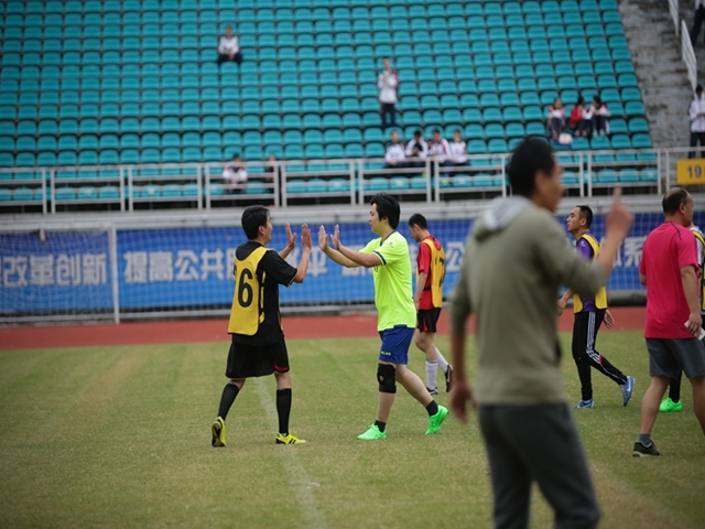 运动会期间,师生联手为观众奉献了一场精彩纷呈的比赛。校足球队凭借良好的身体素质和较高的整体水平打出了一波波精彩的进攻;教职工足球队靠着丰富的经验和默契的配合,在稳固防守的同时伺机反击,逐渐控制了比赛的主动权。最终,教职工足球队以1:0的比分赢得了比赛。