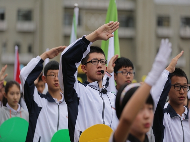10月14日上午8时,南京外国语学校第54届田径运动会在南京五台山体育馆举行。