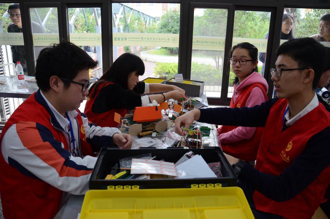 高二(2)孙海皓同学说:习近平总书记曾多次在大会发言时强调要弘扬大国工匠的精神,这也正符合了当今社会“中国制造”的潮流。作为一名合格的“工匠”,我从去年九月份便参加了仿生机器人及激光打印(现名为仿生机器人)的选修课,在选修课的学习活动中, 我学到了不少有趣的知识。而令我无法忘却以及震撼的不仅仅是激光雕刻机的先进,而更是同学的认真仔细。冲刺阶段老师们和同学们拧成一股绳,一起向着自己的目标而努力。最让我感动的是通用技术组的罗老师,她一次次耐心地回答我的问题,用通俗易懂的语言简洁明了的指引着我们。而孙老师也作为我们有力的精神支援,一周五天都泡在综合楼一直到晚上9、10点的我们终于在比赛里有所收获。10月29号注定是一个不平凡的日子,我们组经过层层选拔,终于从150支参赛队伍中脱颖而出,获得了江苏省power-tech的仿生机器人大赛的特等奖。我认为我们这期间的努力和付出就是在实践“大国工匠”精神。最后我想衷心感谢帮助过我们的罗老师,孙老师以及给我们摄影的罗老师,谢谢这几个月的陪伴。我相信没有我们共同的付出,不会有今天获得的成就。