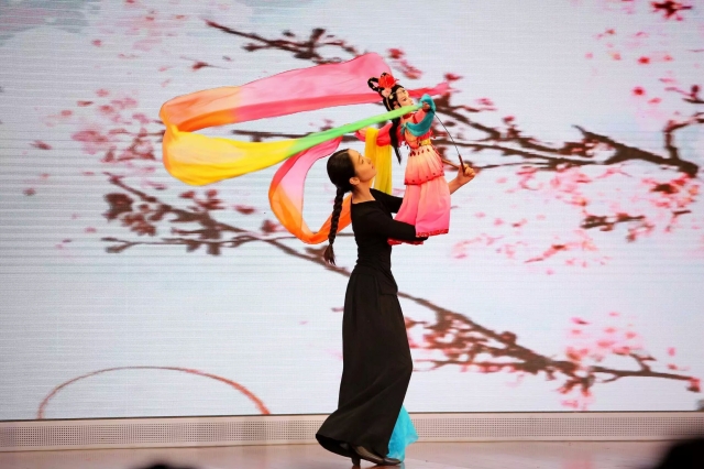 IB高一(1)班的表演“传承”,通过诗词曲赋、舞蹈和木偶戏片段“长绸舞”等不同表演形式的串联,带我们走进绚丽多彩的中国文化殿堂。IB高一(1)班表演负责人刘玉儿,同时也是国际部文艺部长的她表示:“非常感谢艺术节的活动,通过几次排练后同学们之间的感情又拉近一步。在解决种种分歧之后,大家学会了合作精神。艺术节准备过程中欢乐与汗水相伴。同时我们也希望不仅仅是木偶戏,更多的正在消失的中国传统艺术能得到同学们的关注,传承发扬下去。”