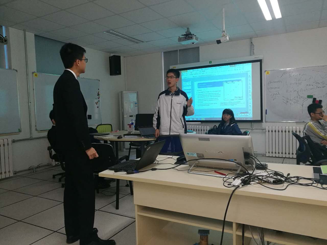 这次选拔采用类似学术讨论的形式。每位同学需要对一个课题的研究进行完整的陈述,并对其他同学研究中的问题进行提问、讨论与现场总结报告。整场选拔均以英文进行,并需要我们对各个物理课题有相对深入的了解。我校三位同学与来自北京、山东等地的优秀学生们一起讨论交流,展现出了扎实的物理功底,良好的学术精神和出色的演讲能力。