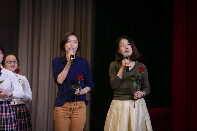 当班主任们上台接受同学们的献花时,气氛达到了高潮,老师们祝福同学们拥有更加灿烂美好的明天。毕业仪式最后在师生合唱《最好的未来》的歌声中落下帷幕,同学们的心中都充满了自豪和骄傲:我们的青春在南外的校园飞扬!