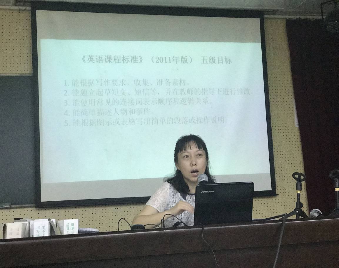 两节课后,初三备课组长杨蕊彧老师就“中考英语第二轮复习”做了专题讲座。杨老师指出英语第二轮复习的原则应该以学生为本,注意每个学生的特点,关注每个学生的复习需求,强调通过反思性复习建构知识网络,建立师生互动、积极开放的教学模式。杨老师重点聚焦了中考写作中存在的问题并就此提出了提高写作得分的建议。她建议老师们严格按照作文评分标准,加强对学生写作过程的指导(尤其是审题训练),并且提高作文批改的有效性,引导学生尽可能多用熟悉的有把握的语言,在平时的练习中注意好词好句的积累。
