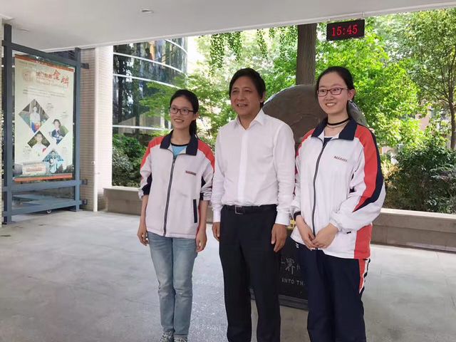 离开南外前,彭校长在校园中巧遇我校今年考入北外的保送生,与她们交谈良久,十分愉快,保送生们还将刚刚结集成册的2017届保送生文集《松鸣》赠送给彭校长,最后与彭校长合影留念。