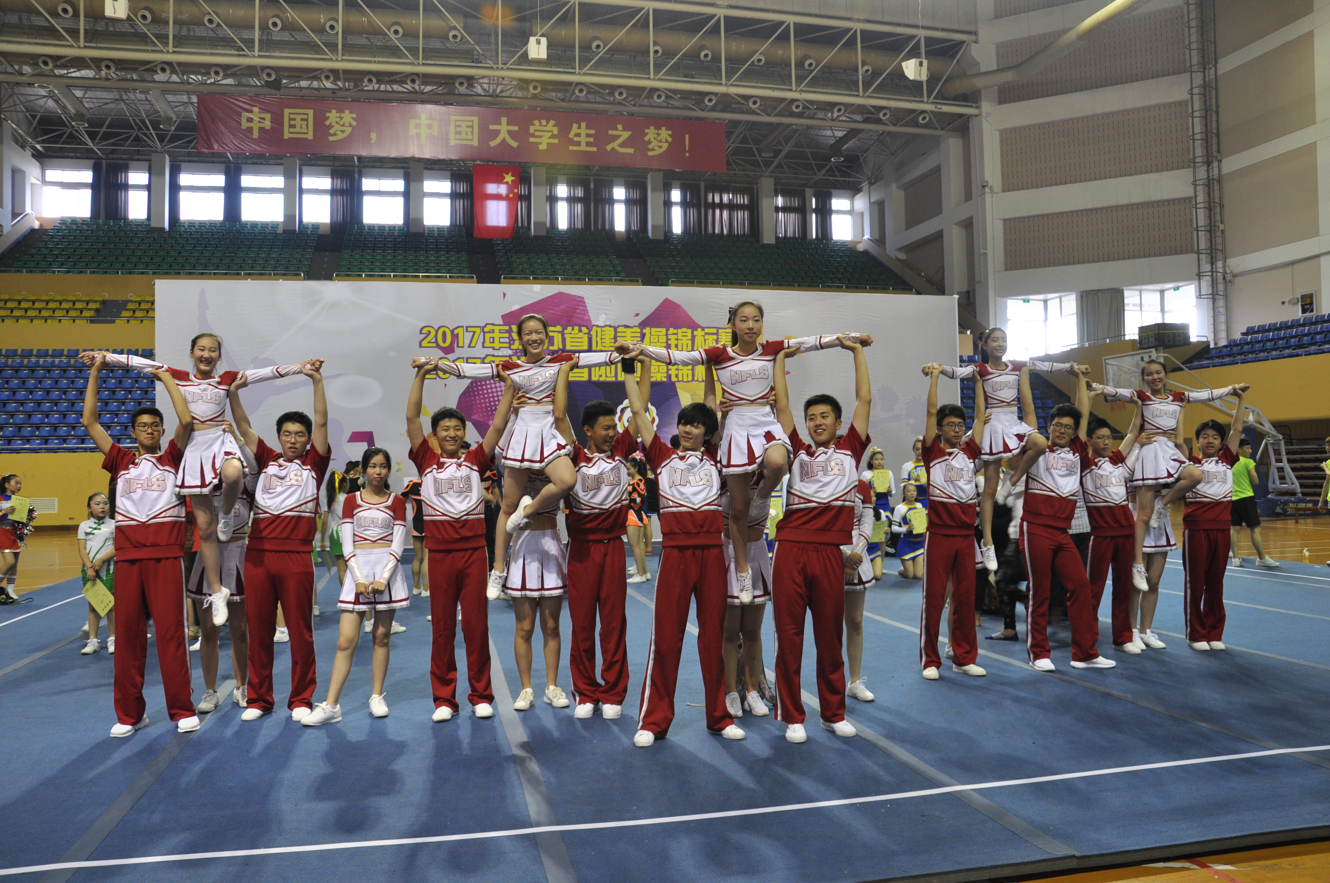 我校技巧啦啦操队参加省锦标赛,同样获得了第一名的好成绩