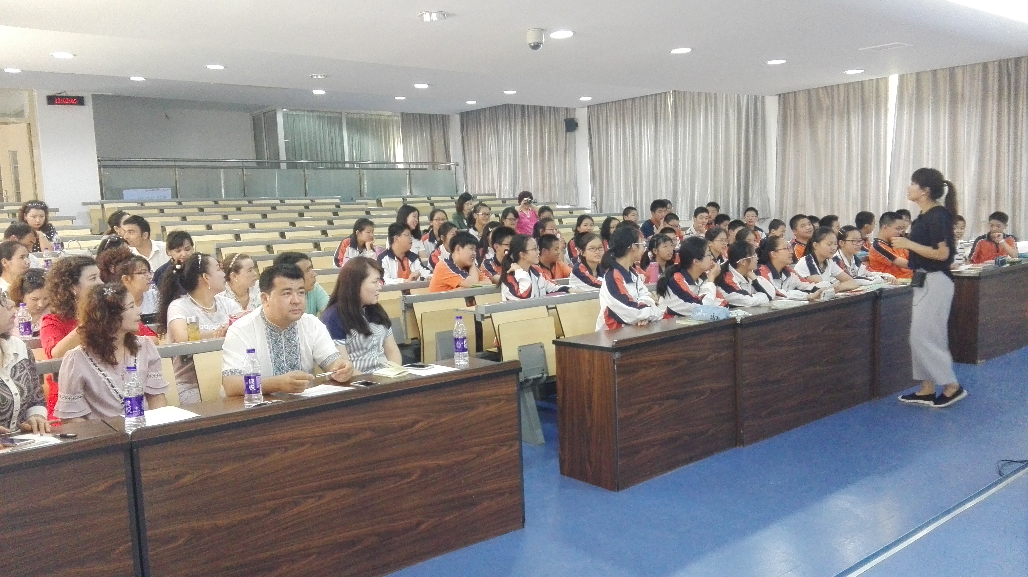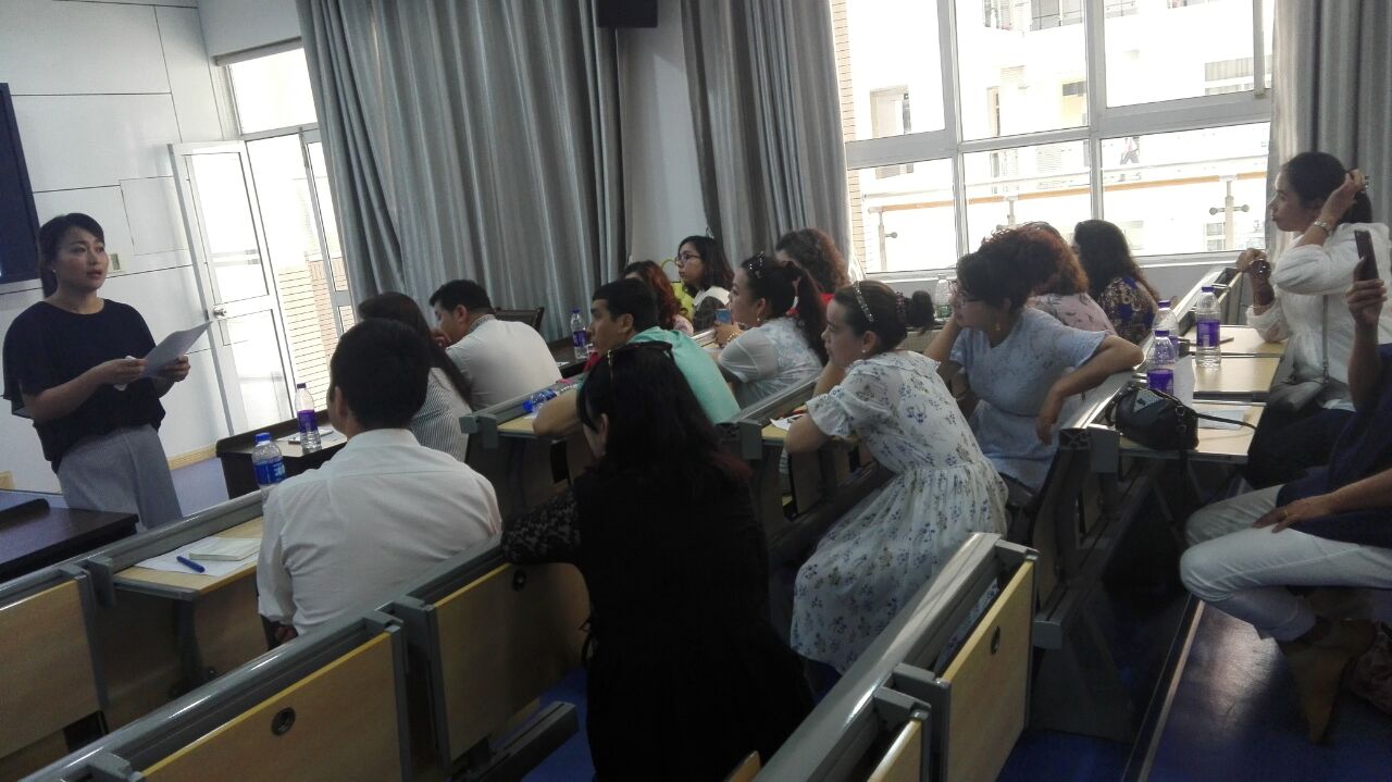 5月26日下午南师大新疆双语初中生物骨干教师培训班的23位老师在他们导师的陪同下来我校生物组听课学习,马媛媛老师为他们开设了一堂初一的观摩课《保护生物圈——从自身做起》,课后马老师就这堂观摩课做了课堂设计的分析,会后生物组陈芸老师陪同他们参观了生物实验室,具体介绍了高初中数码显微镜的使用和教学应用中的便利。随后参观了解剖室、组培室和生物标本长廊,以及学生制作的DNA模型。陈芸老师还特邀学校STEM+课程基地负责的许亮亮老师介绍了该课程基地相关背景和实验室设备及学校的资金和师资的投入,以及课程的设置意义,获得了新疆同行的钦佩和羡慕。