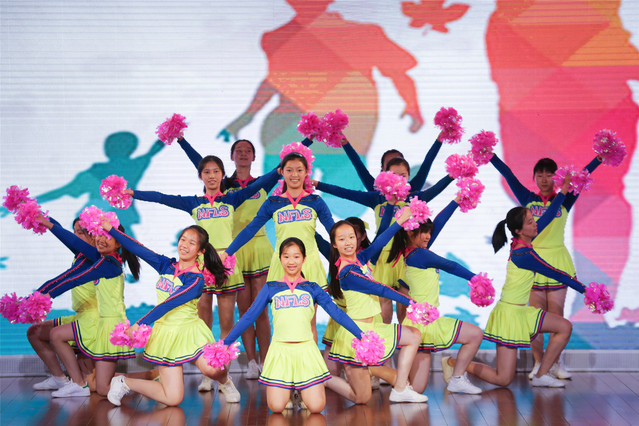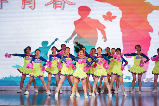 啦啦操的队员们也用自己的方式体现出了青年特有的活力。