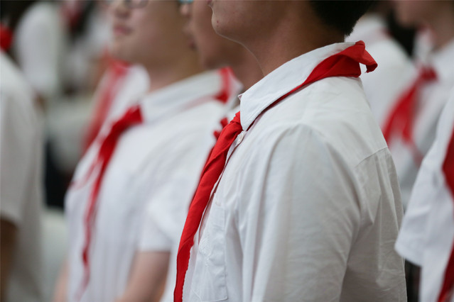 摘下红领巾,中国共产主义共青团在向我们招手,我们中的优秀分子已经领先一步,加入了光荣的中国共产主义青年团。