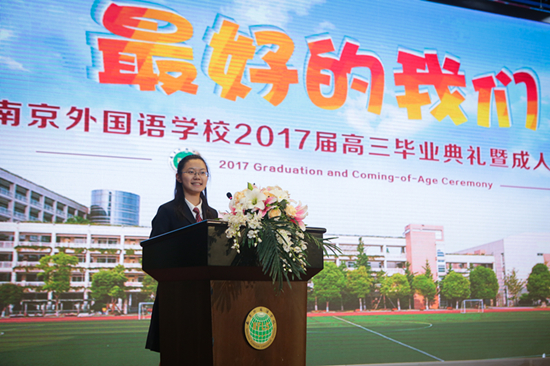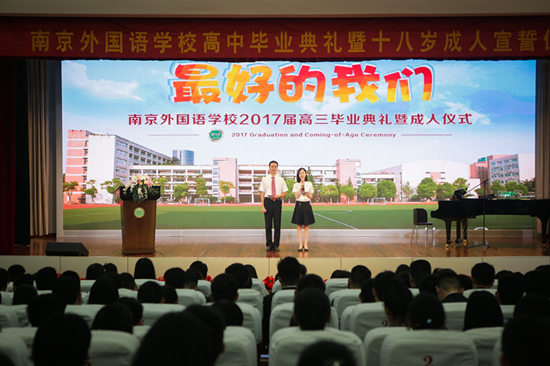 6月12日下午,南京外国语学校2017届高三毕业典礼暨成人仪式在学校报告厅隆重举行。
