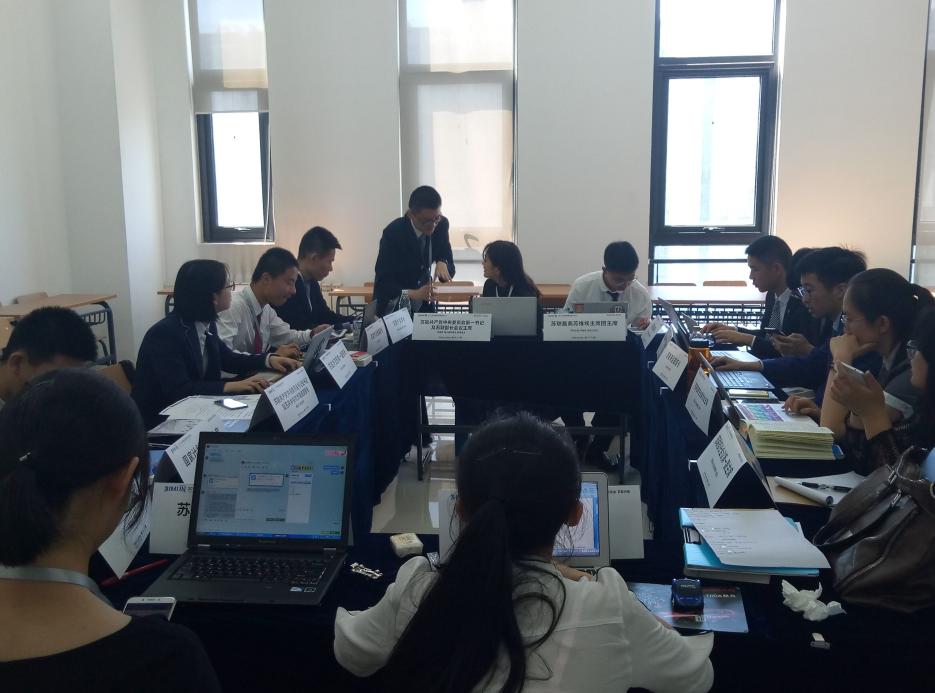 高二(8)班李泰林同学(站立)与大会代表磋商