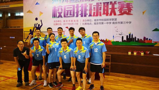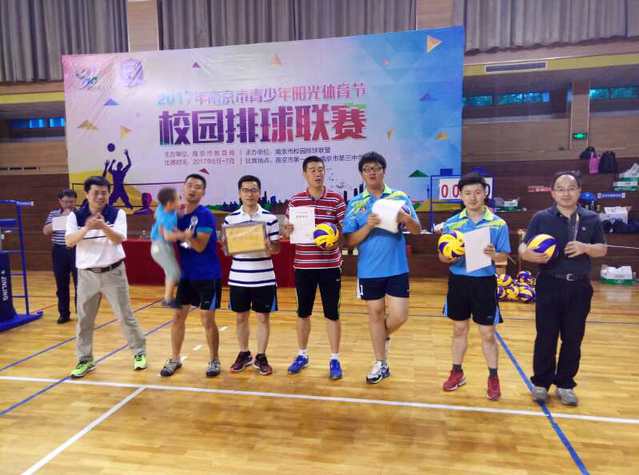2017年6月10、11日两天,我校教职工排球队参加了南京市青少年阳光体育节校园排球比赛,荣获园丁组二等奖,领队王瑞卿副校长荣获排球联盟“人气最佳领队”称号,教工排球队还获得精神文明奖。