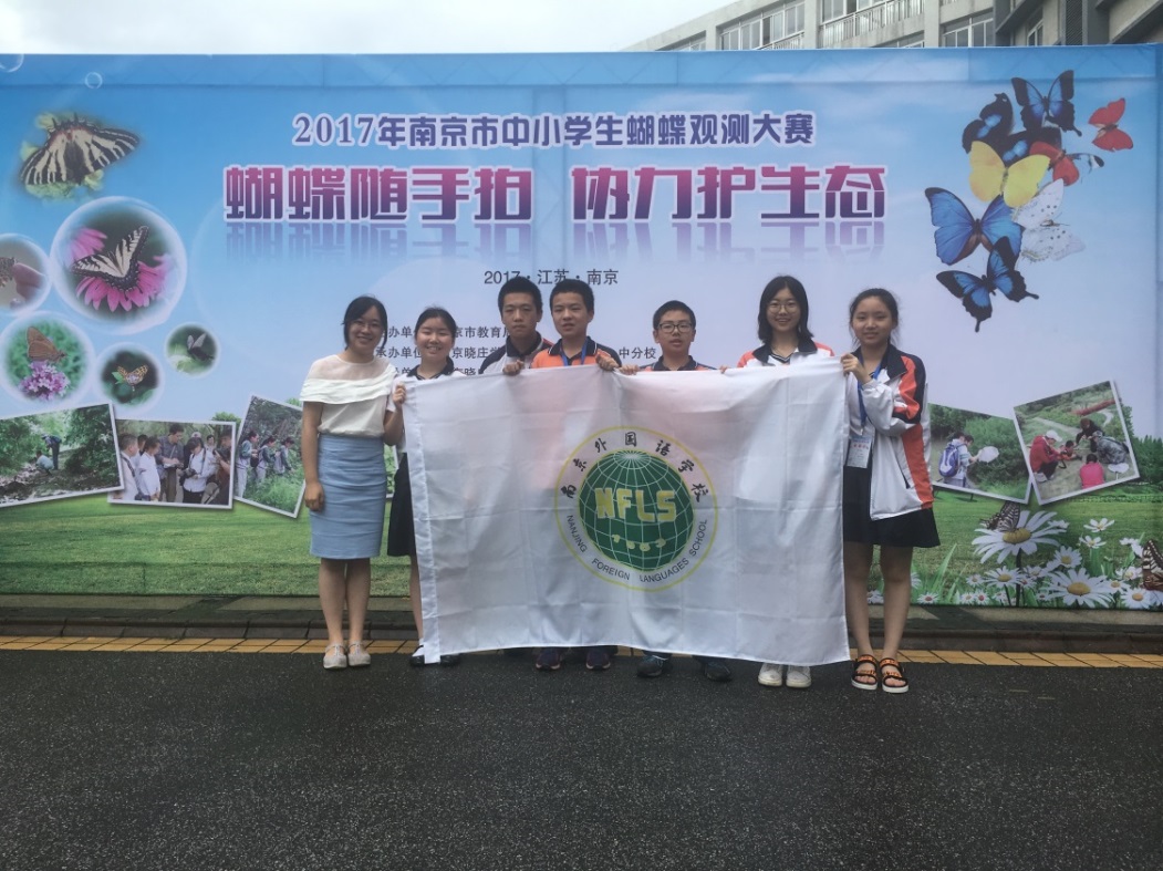 2017年7月2日上午,我校六名学生在教学处副主任李鸿彬的陪同下和徐胜媛老师的指导下参加了2017年南京市中小学生蝴蝶观测大赛蝴蝶识别竞赛,获得团体一等奖第一名的优异成绩。初一(12)班高天琛、初一(5)班的王子豪和初一(7)班的高铭获个人一等奖,初一(5)班的郑欣和初一(7)班的文咏佳获得个人二等奖,初一(11)班张圣岳获得个人三等奖。其中,高天琛获得一等奖第一名,也是全市唯一的满分。
