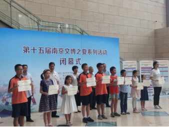 南京市文化广电新闻出版局、南京市文明办、南京市教育局、南京市关工委、南京市博物馆总馆等部门领导出席了闭幕式。首先,与会领导总结了本次“文博之夏”的各项活动并给予高度评价。随后,对获奖同学举行了颁奖仪式。在“梅园杯”我最喜爱的博物(纪念)馆征文活动中,中学组获奖人数25人,我校有8位同学获奖。其中,孙之尧、房巧兮获一等奖,宋天泽、戴江齐、胡润天获二等奖,李林晚获三等奖,胡欣然、诸烨晨获优秀奖,南京外国语学校获得优秀组织奖。