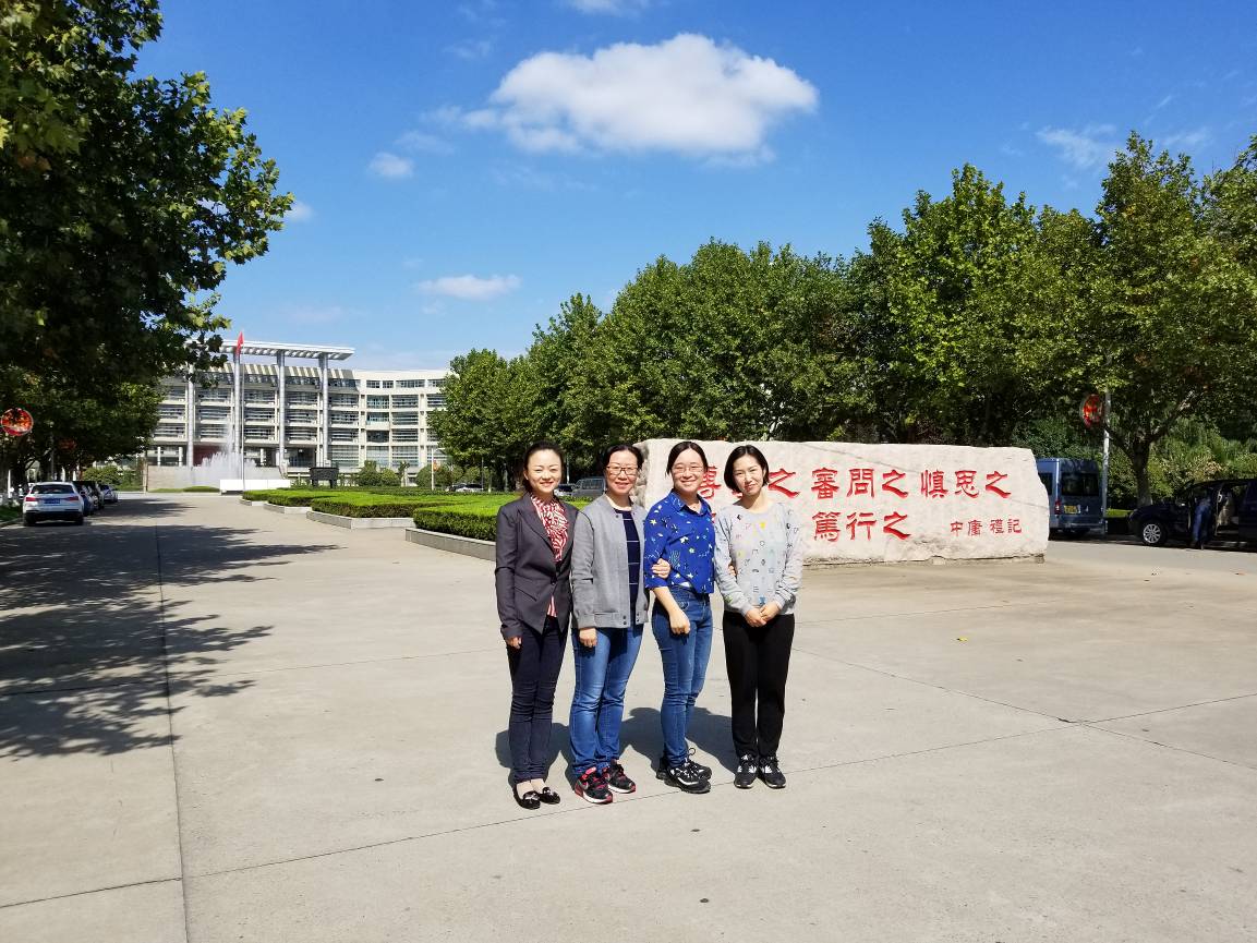乔兰、杜菁、徐胜媛、邓佳卉四位同行老师在盐城高级中学合影