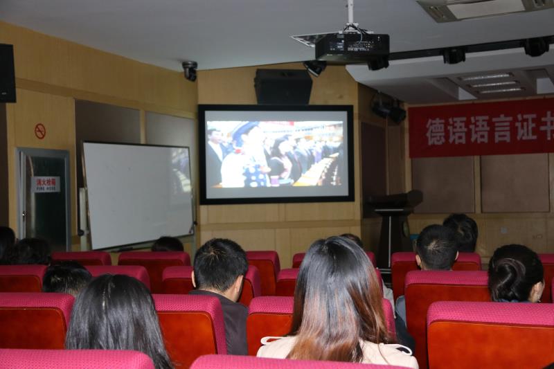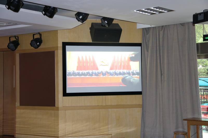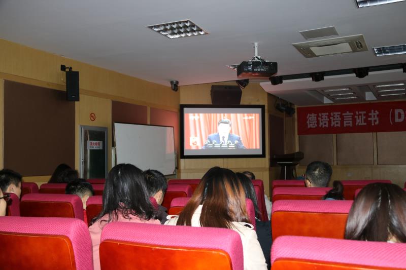 2017年10月18日上午,南京外国语学校的小剧场里,全校教师第一时间通过直播学习领悟习近平总书记十九大报告精神。