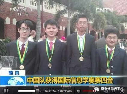 (图为第25届国际信息学奥林匹克竞赛中中国队获得四金,乔明达为第二名,在左二)