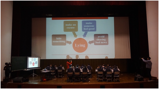费晨老师以The Truth about Lying为题进行教学展示。费老师从鼓励学生分享个人撒谎经历为切入点,自然过渡到对“善意的谎言”和“真相”的思考从而导入本课主题。在教学过程中,她抓住cause and effect逻辑主线,鼓励学生探索和审视自身对谎言的理解与思考,促进批判性思维的养成。点评专家葛炳芳肯定了费晨老师对文本的多角度解读能力和课堂上针对“谎言与真相”的深刻讨论活动。张英老师也赞扬了费老师对文本的选择和对教学设计深刻的思考。