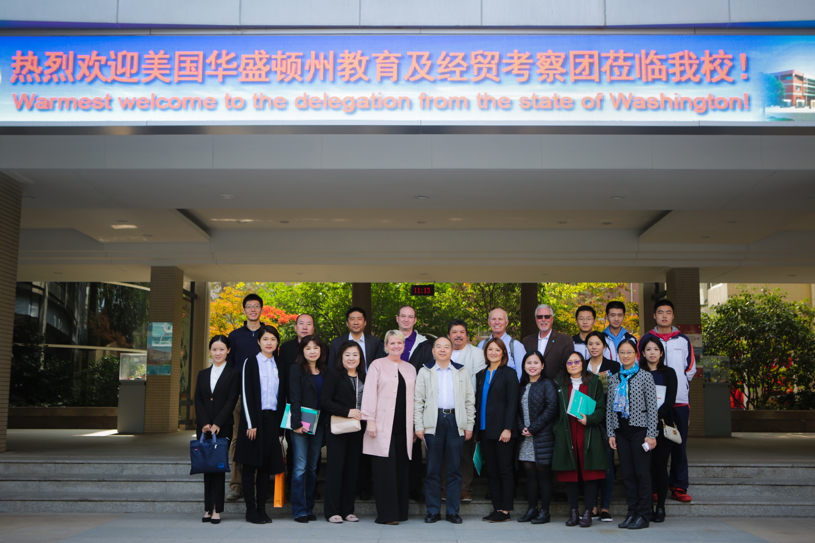 2017年11月15日,美国华盛顿州教育及经贸考察团一行17人参观了南京外国语学校,并与学校及教育局有关领导进行了座谈。座谈会上,双方就南京与华盛顿州的教育、经济、文化情况进行了深入交流,增进了互相的了解。
