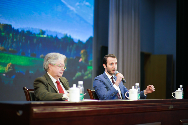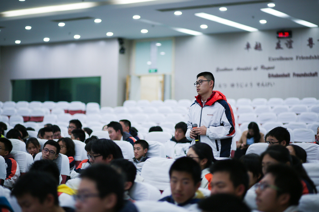 大使先生的分享结束后,同学们也纷纷就自己感兴趣的问题向大使和参赞先生提问:瑞士的教育体制与中国有怎样的不同?瑞士在环保方面有哪些法规?您为何会选择外交作为自己的事业?当今中国和北欧国家的交往之间最缺乏什么样的人才?先生们一一给予了热情而详尽的解答。