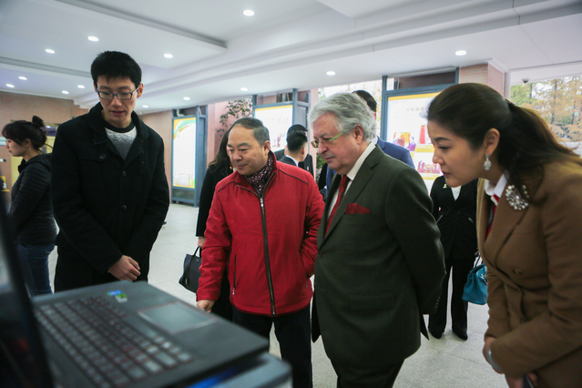 随后由我校程昊然、吴可威向大使先生介绍我校的STEM实验室,大使先生一行人对南外学生优秀的外语表达能力交口称赞。