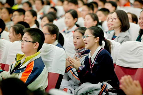 众多振奋人心的节目中,有诗音画朗诵《丰碑》之声声泣血,字字含情,有好书品读《烙在心底的那抹红》讲述三本好书陪伴党和人民走过峥嵘岁月,亦有压轴歌舞《不忘初心》的深情演绎,教会在场的每一个人不忘初心,砥砺奋进。我校初二(6)班和国乐飘香社的同学表演了精彩的舞蹈《中国字》和民乐联奏,展现了南外人对中华优秀文化的研习与传承。