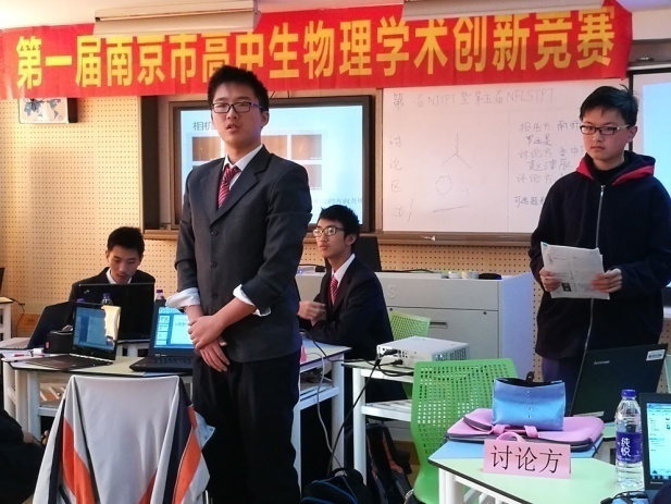 本比赛的预赛于11月22日傍晚在南外综合楼开展。9支代表队经过抽签,分为3组,分别进行小组比赛。各方凭借着丰富的学识,科学的方法和敏捷的思维,对物理问题进行深入研究和讨论。这种于互相讨论中提高自我的方式为学生提供了良好的学习和实现平台,同时也彰显了现代青年学生的求知精神。