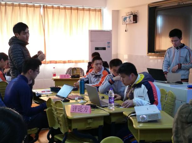 星期六的比赛,我队由王然首开纪录,评论方的高分使我们确立了领先的优势;许乔智在被迫选择不完全熟悉题目的情况下进行的反方报告也获得了赛场第一的高分。而来自高一(7)班的柯关关表现优异,沉着冷静地完成了15题“泡泡”的研究报告。