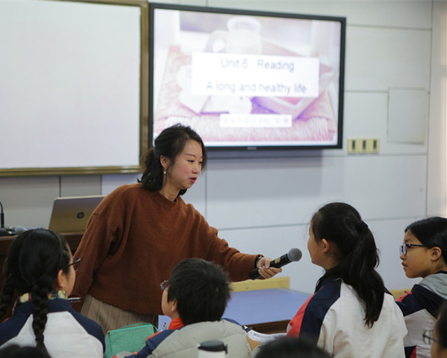 我校朱琳老师开设了一节公开课。公开课的话题选自教材English in mind 第一册第六单元,主要探讨如何健康长寿。这节阅读课教学目标明确,以学生熟悉的食物作为切入点激起学习兴趣,阅读课课型明显,采用了分层阅读,阅读策略以任务型教学为主,明确每个环节的教学目的。朱老师用关键词将文本以思维导图的形式呈现在黑板上,配以课件中生动形象的图片,为学生创设了一个鲜活的语境,学生的思维得以充分激活。在提问和追问环节,老师和学生之间的生成性互动给大家留下了深刻的印象。在师生互动中,学生们充分感受了文化的多样性——饮食中的多元文化。