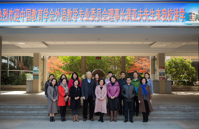 12月1日,南京外国语学校英语组暨“南京市初中英语李爱云名师工作室”在南外本部举办了“新课标下多元目标的英语教育研究”主题研讨活动,邀请了中国教育学会外语专业委员会理事长、全国知名英语教育专家龚亚夫先生,江苏省教科院机关党委副书记、正高级教师何锋先生莅临我校指导。