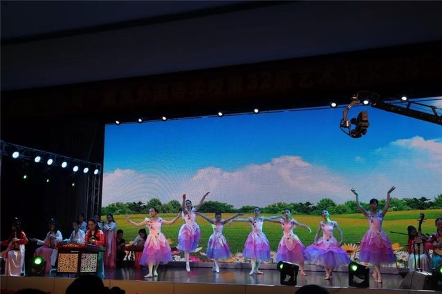 这是第32届艺术节汇演,本届艺术节的主题是“古韵今风”。听千古之韵,畅今世之风。念中国灵魂,育世界胸怀。五千年的文化沉淀深入人心,新时代的嘹亮钟声铿锵有力,同学们用自己的方式品味历史,迎接新的未来。