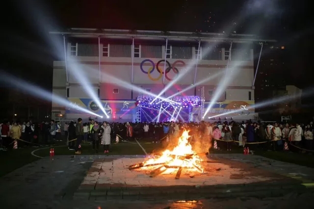 邹正校长、学生会主席王然、冬日里给大家带来温暖的南外好青年陈宇昂一起点燃了篝火,同学们期待已久的盛会开始了!