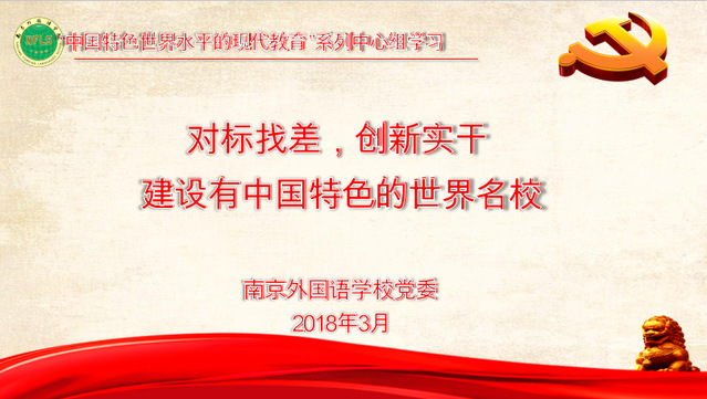 2018年3月26日下午,我校中心组成员和部分分校领导在刘前树书记的主持下,围绕南京市委市政府提出的“对标找差,创新实干”开展了中心组学习。