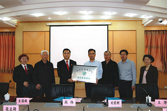 玄武法院副院长高伟与南京外国语学校党委书记刘前树共同签署了“共建关爱活动阵地”协议书,共同为“南京外国语学校校外教育基地”揭牌。