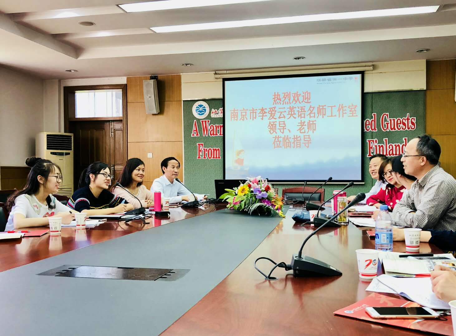 老师们观摩了高二的英语听说课堂,并对天一中学英语教师过硬的专业素养,学生出色的语言素质赞不绝口。课后,副校长朱卓君和英语教研组长张洁老师主持了交流座谈会。会上,朱校长致欢迎辞并介绍了天一中学的基本情况。沈茂德校长向工作室的老师们介绍了天一中学先进的办学理念。张洁老师就该校英语教研组的建设情况做了经验介绍。李爱云老师介绍了工作室的成员以及工作室近年来在推动本地教师发展上取得的成绩。南京外国语学校教学处尚媛媛主任介绍了学校英语教研组的建设情况,以及外语大课程理念。江苏省英语特级教师李俊老师对观摩课进行了精彩点评。天一中学观摩课的执教老师裴虹老师也就教学上的困惑和感想和在座的其他老师们进行了深入的交流与探讨。会上,老师们表示,希望以后能加强校际间的交流合作,为教师发展提供更广阔的平台,共同推进英语学科的教育改革和实践。