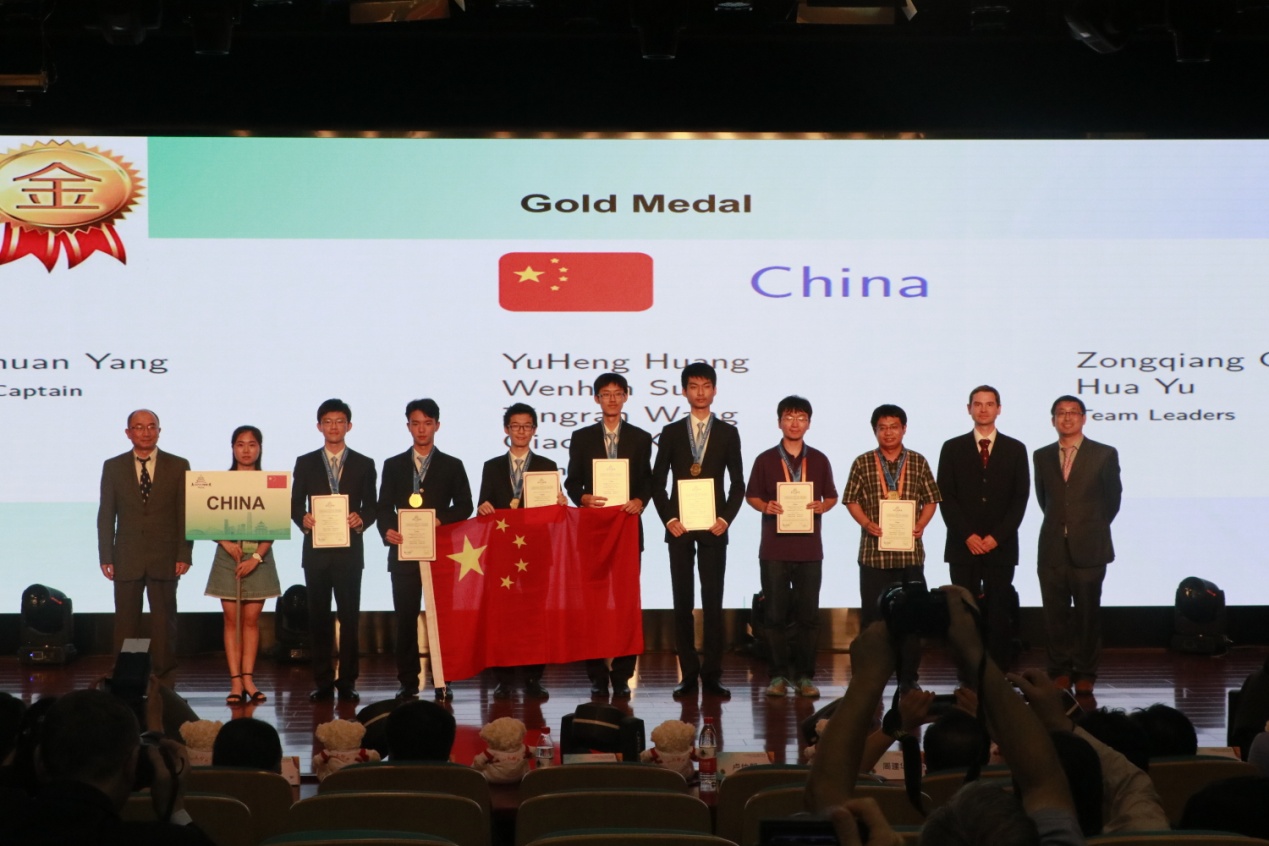 中国队获IYPT2018团体金牌(左四为我校许乔智同学)