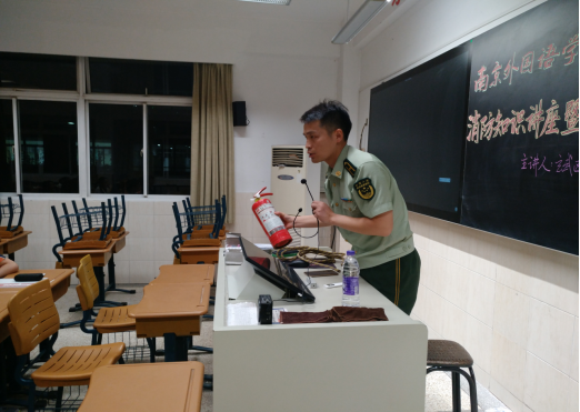 几天前就被告知本周四要进行一次消防演习。本以为会和往常一样,是一次模拟火灾发生后逃生的演练。没想到的是,学校这一次专门请到了玄武区消防大队的夏参谋,来给我们住校生进行消防安全的培训。