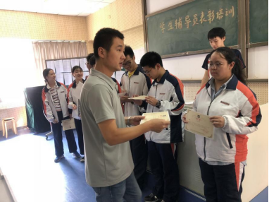 表彰颁奖后,来自高二(7)班的郁嬿同学作为优秀学生辅导员代表与新一届学生辅导员们交流了自己的经验。