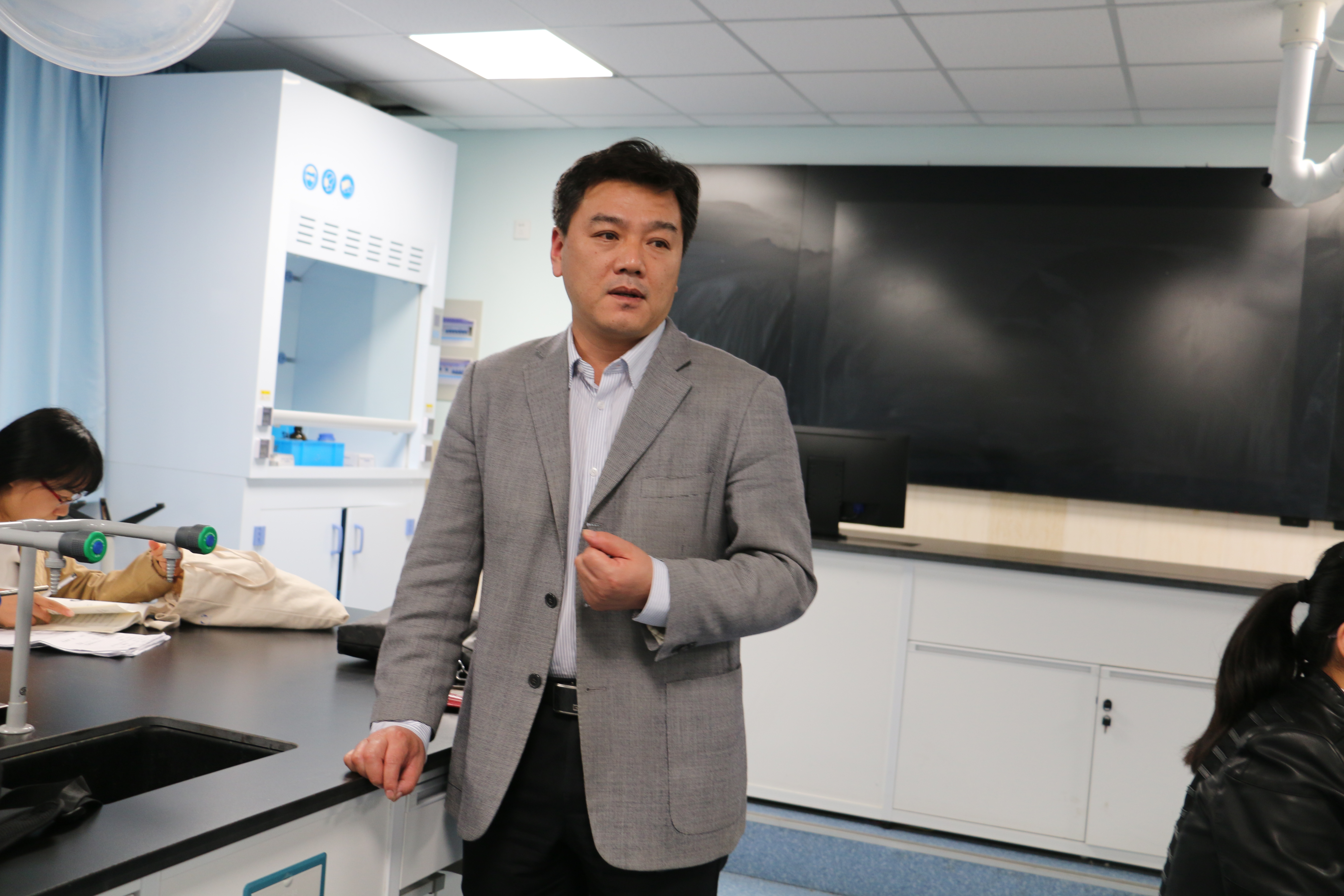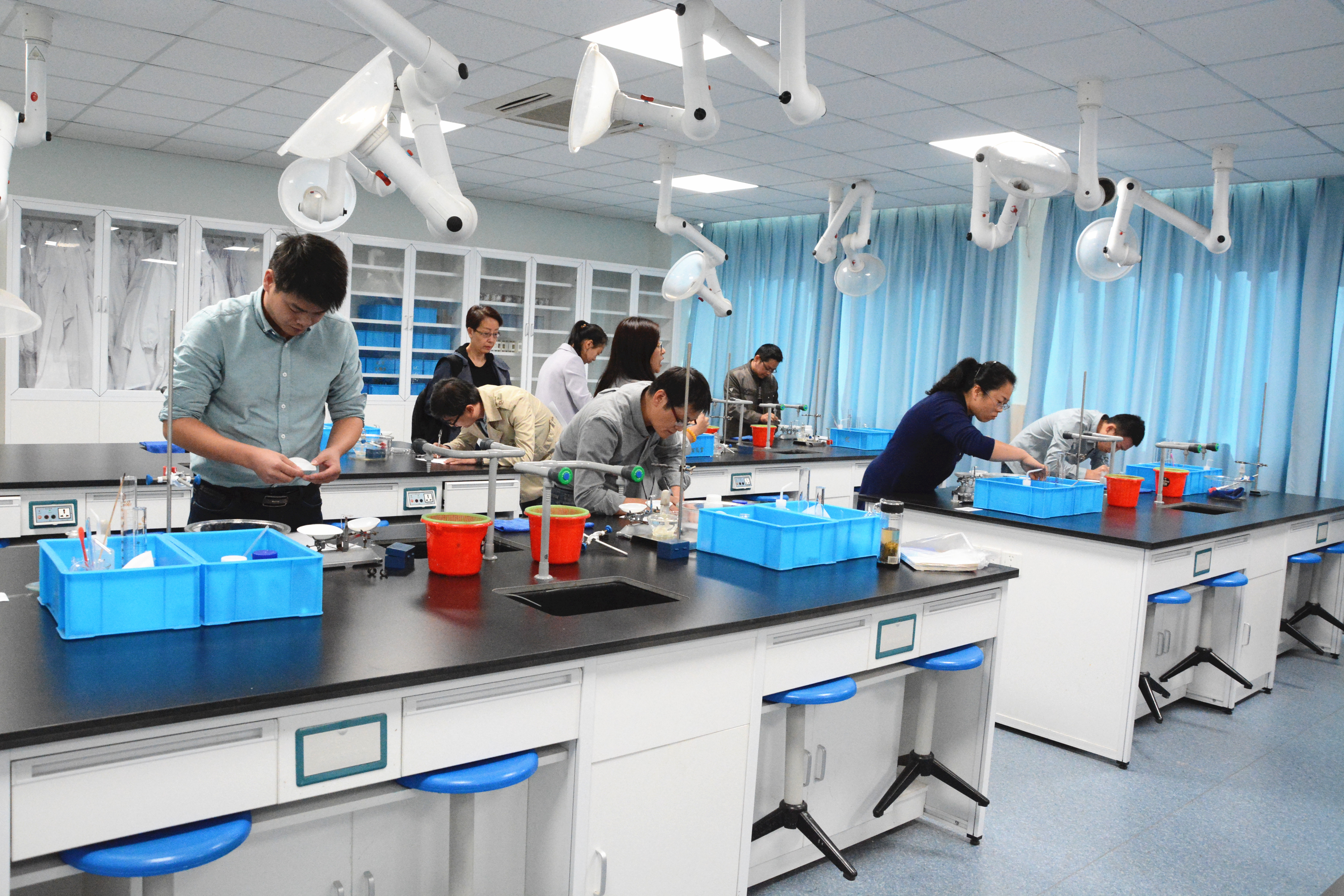 2018年10月18日下午,南京市初中化学实验教学技能比赛在我校化学实验室举行。经各区和直属学校初赛选拔推荐的35位教师各显身手、互相切磋,进行了笔试和实验操作的比赛。竞赛中,教师们沉着冷静、规范操作,评委们细心严谨、认真负责。